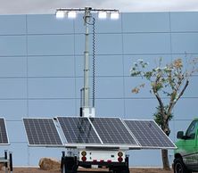 This model generates 1440 watts with its 4 panels. This creates more energy than it consumes during full sunlight. This system is a great platform for Communications, Security, and Lighting needs. This unit is also fully customizable allowing for choice of Powder Coating color, back up wind generator, cameras/scanners, cold weather package, folding tow bar, etc.